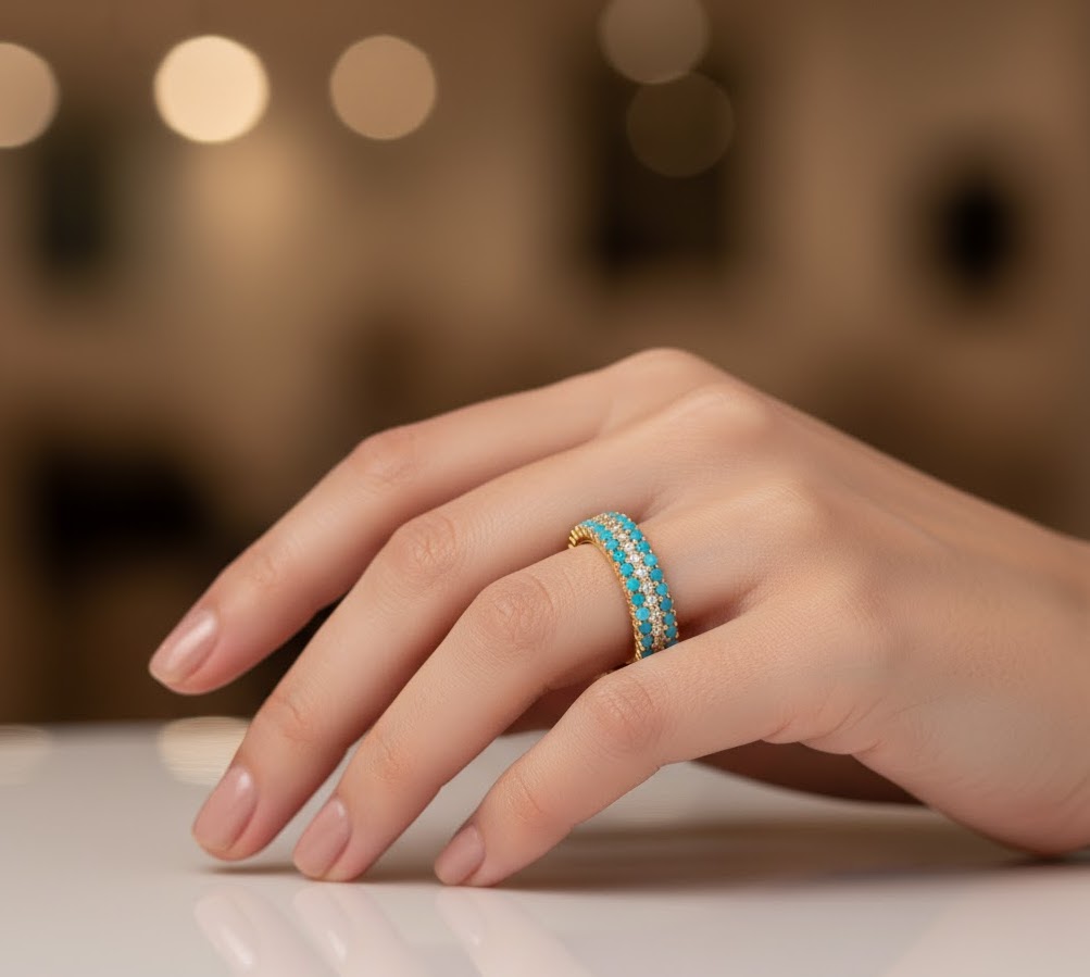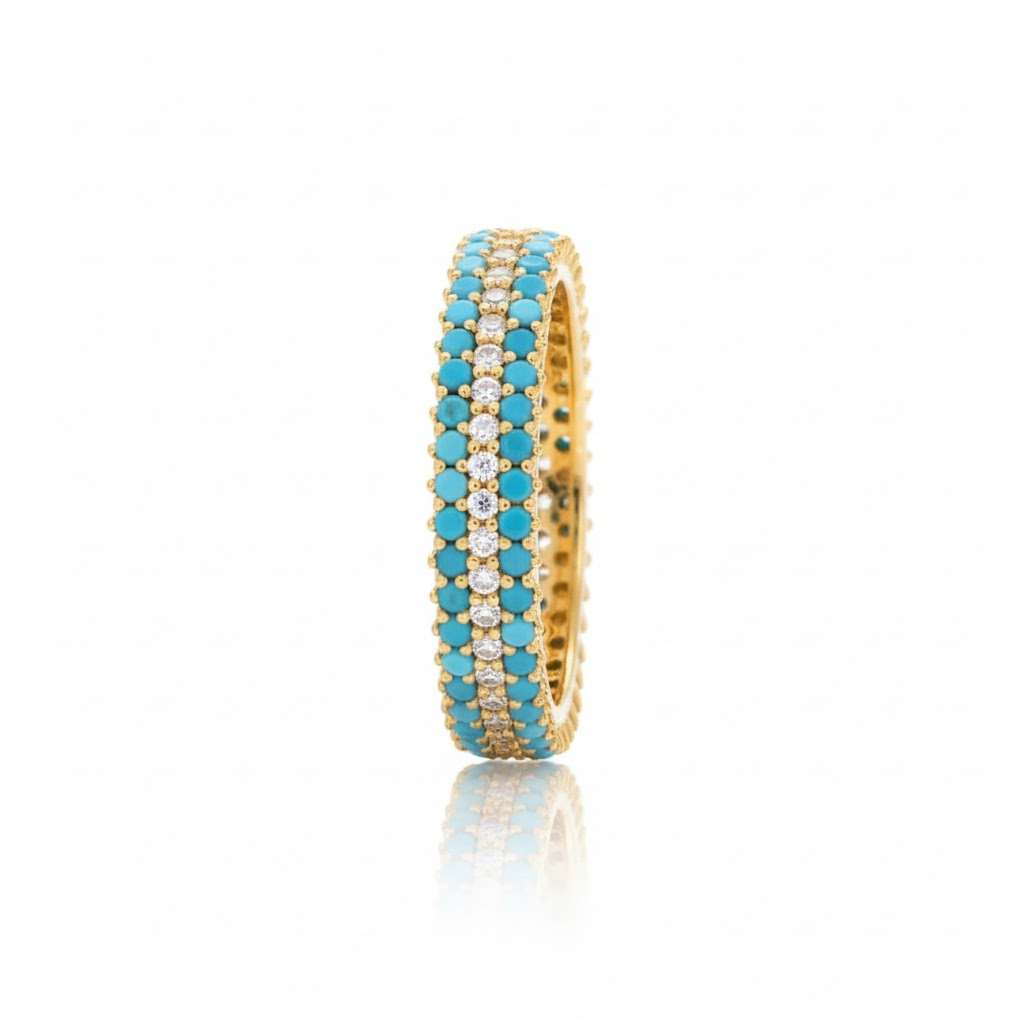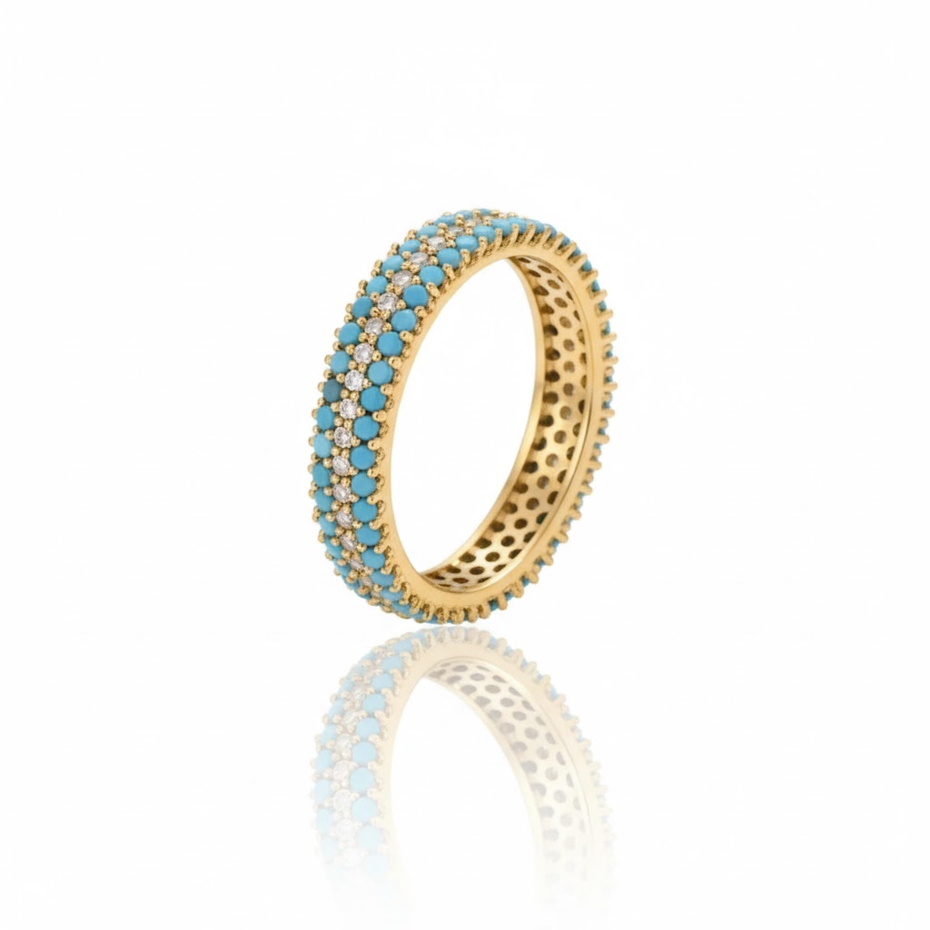 ターコイズとダイヤが煌めくK18エタニティリング。360°美しい華やかさを。