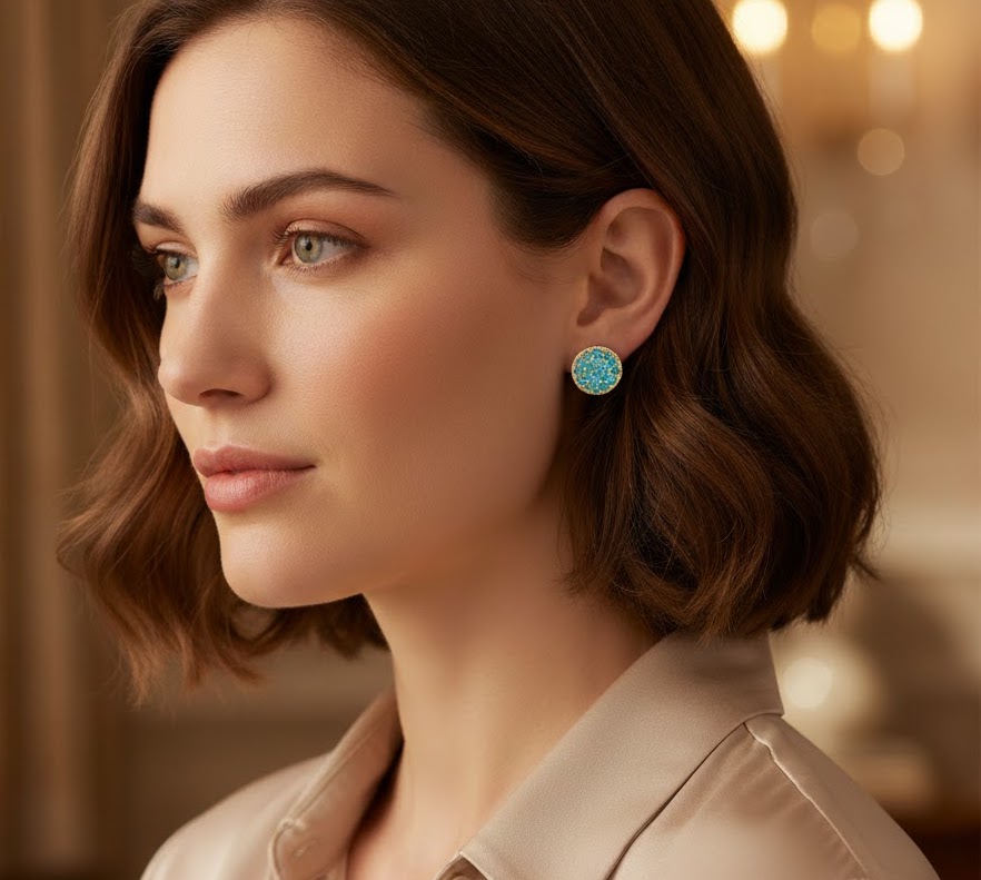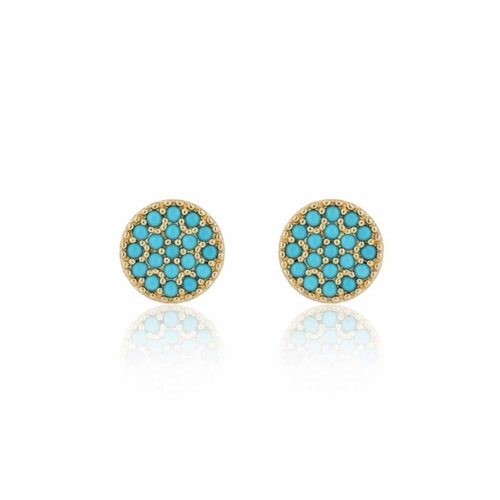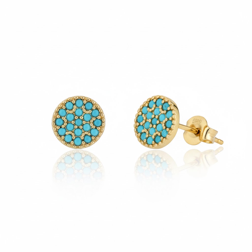 鮮やかなターコイズブルーを花びらのように配置したフラワーモチーフピアス。K18イエローゴールドの細やかなドット装飾がターコイズの美しさを引き立て、華やかで個性的な印象を与えます。軽やかでフェミニンなデザインは、カジュアルからリゾートスタイルまで幅広く活躍。トレンド感と上質さを兼ね備えた一品です。