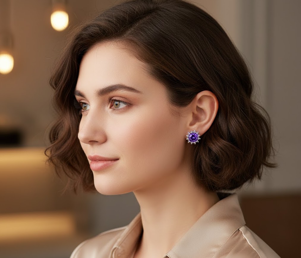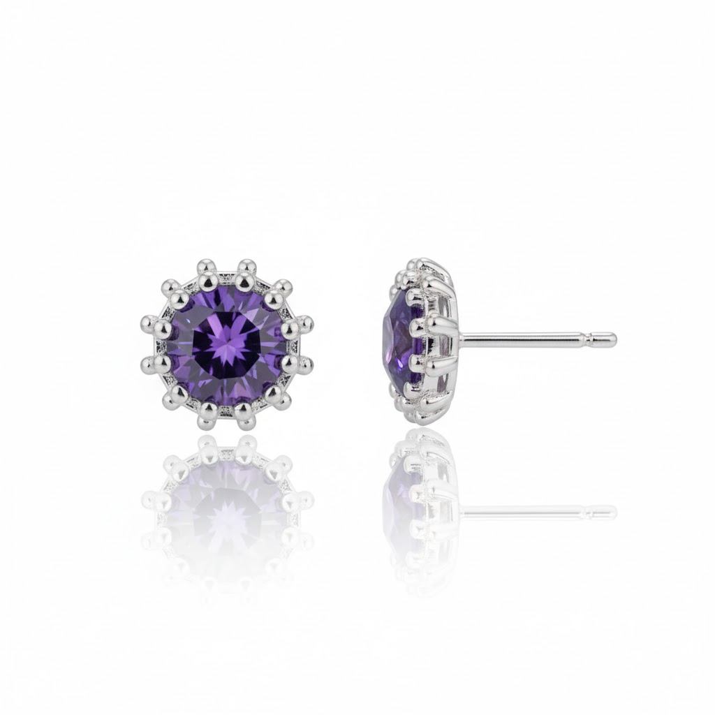 高貴なアメジストをクラウン風に仕上げたPtピアス。知的で上品な輝き。
